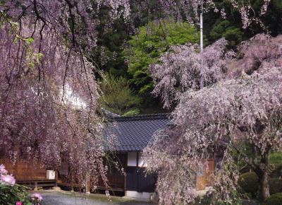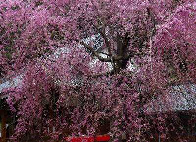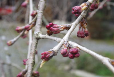 一重の紅しだれ桜です。満開はまだ先になります。8日9日頃から見頃に入り15日過ぎるまで鑑賞できると思います。