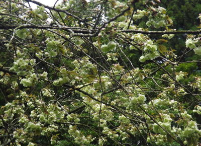 鬱金の桜が開花しています。
