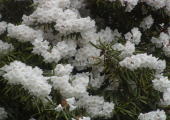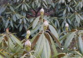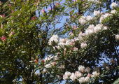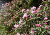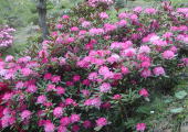 半日陰にある石楠花と遅咲き種が開花しました。