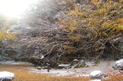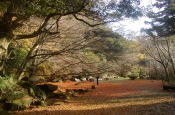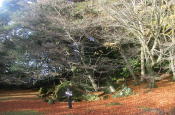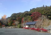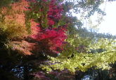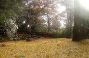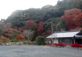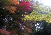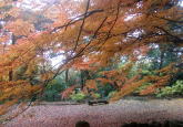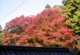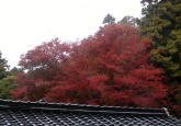 黄ケヤキは色づきました。雪舟の庭周辺は日当たりが悪い為、なかなか色づきません。山王権現横の大モミジは急速に赤くなりました。