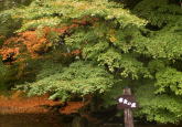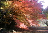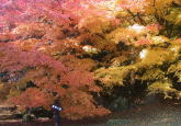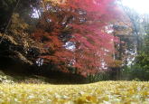山王権現横のモミジは完全に紅葉しました。黄ケヤキは完全に色づきました。雪舟の庭はまだ色づきません。