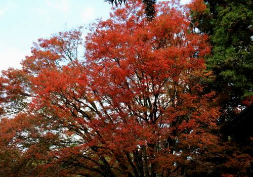 山王権現横の大モミジが紅葉しました。石段から奥のモミジも紅葉しました。