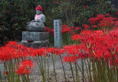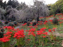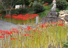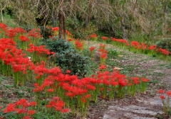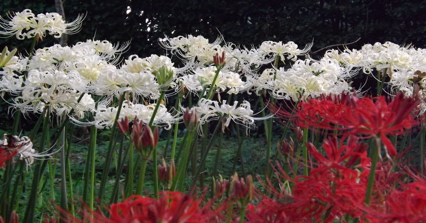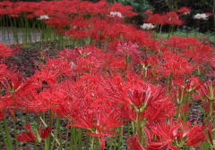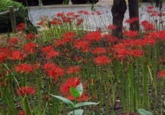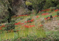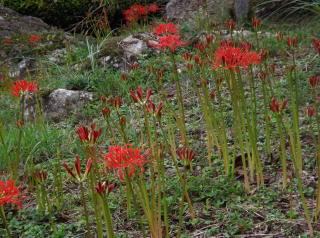 彼岸花の芽が伸びてきました。全体の1割くらい開花しています。