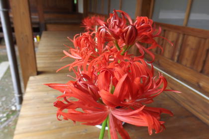 鉢植えですが八重咲彼岸花が開花しました。加奈姫と紅孔雀です。